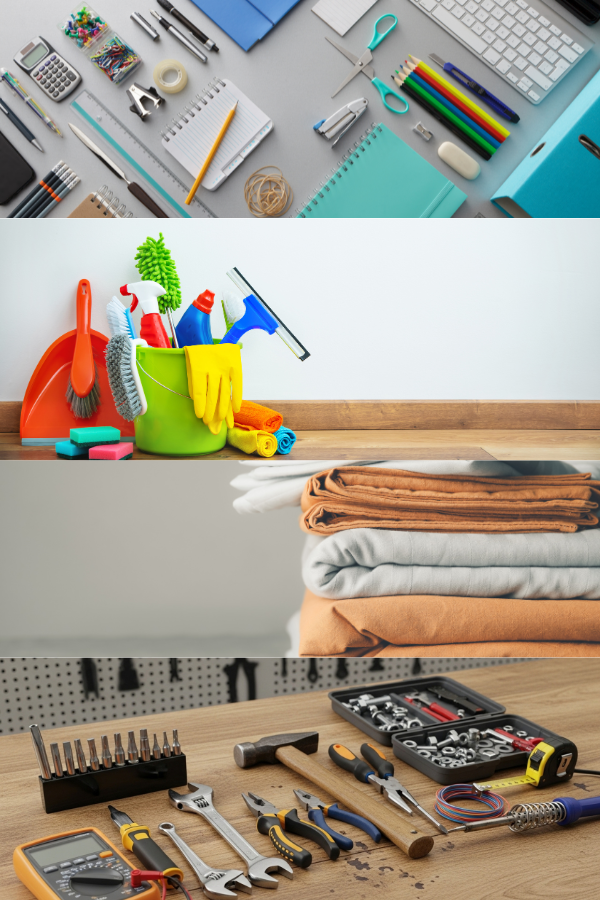 Dormitory & Residential Supplies - Bedding (sheets, pillows, mattresses), towels, laundry detergent, toiletries, furniture, storage bins